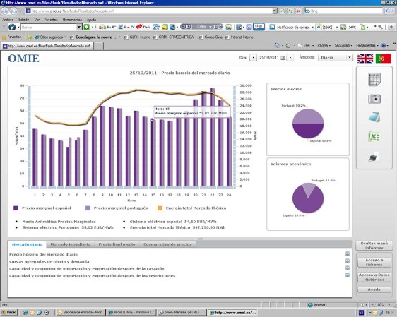 Para poder controlar el precio del pool en todo momento nos iremos a la página de OMEL: